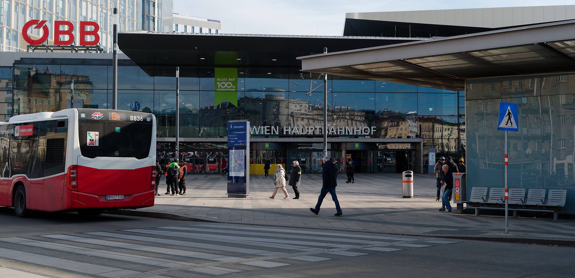 I was passing the new main railroad station in Vienna the other day and noticed how difficult it was to see the clock when I was approaching it. From further away, it was completely shielded by the bus station!