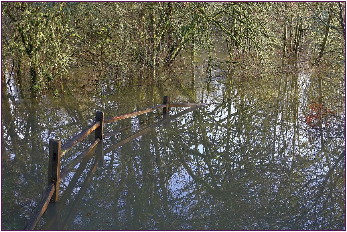As I have shown, the snow we had is all melted. Now we have some flooding in areas near the rivers. Yesterday we had pouring rain for a short while. Here's the area where you all saw the orange sled on the ice.