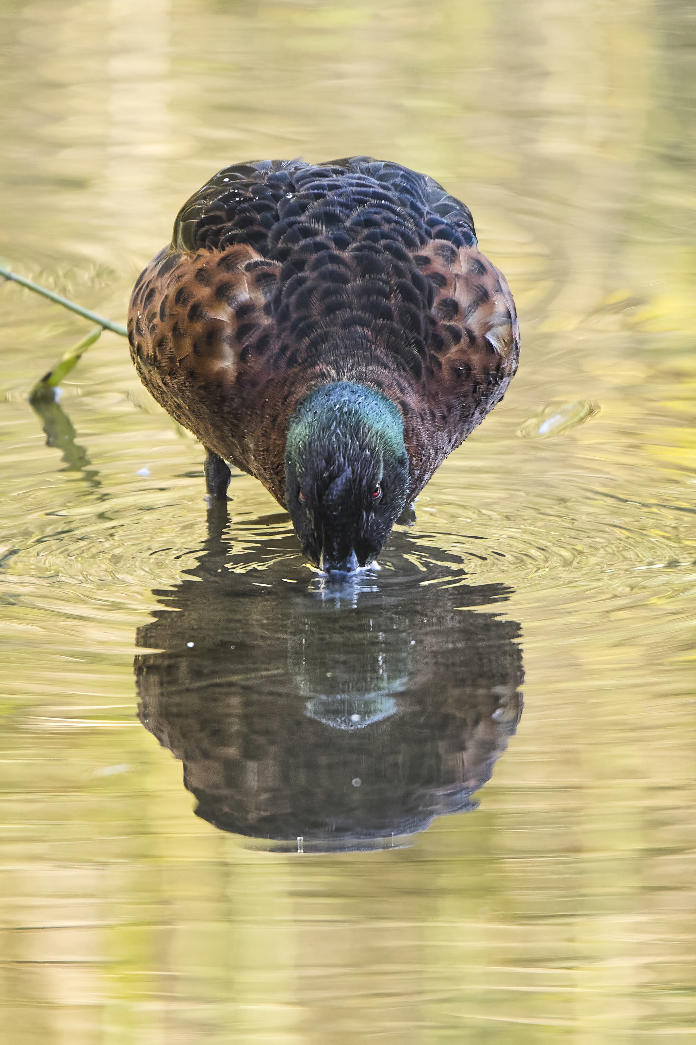 Chestnut Teal feeding
