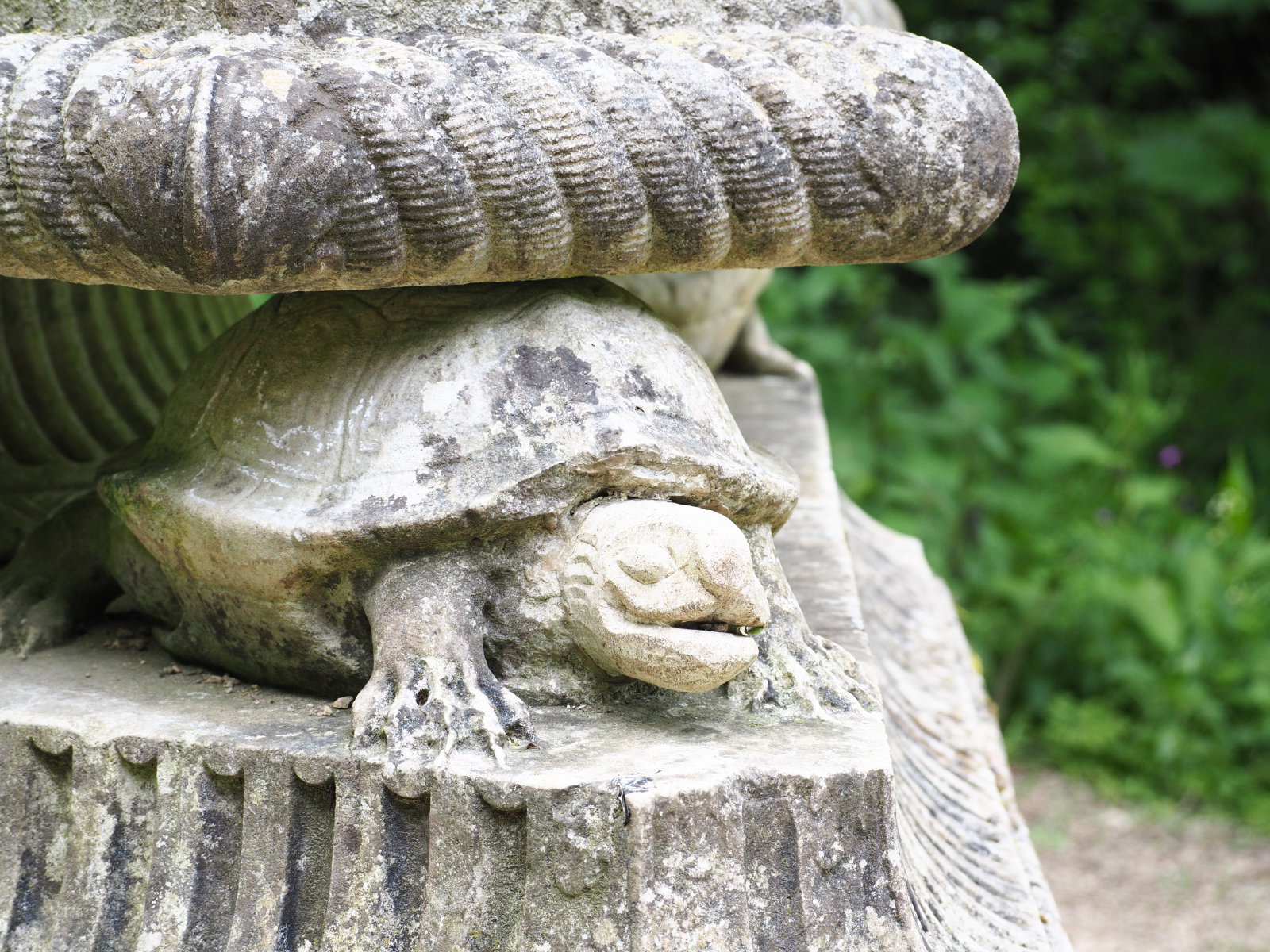 That's a neat sculpture of the tortoise. It must have taken a long time to create.