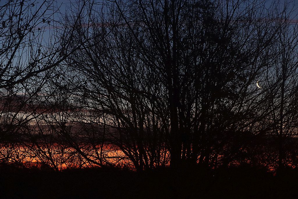 I like seeing the moon as well. It must have been cold...brrr...brrr.... 😀 What got you up so early in the morning? I do like to see tree silhouettes. But I would have liked to have seen less of the trees with the sunrise.