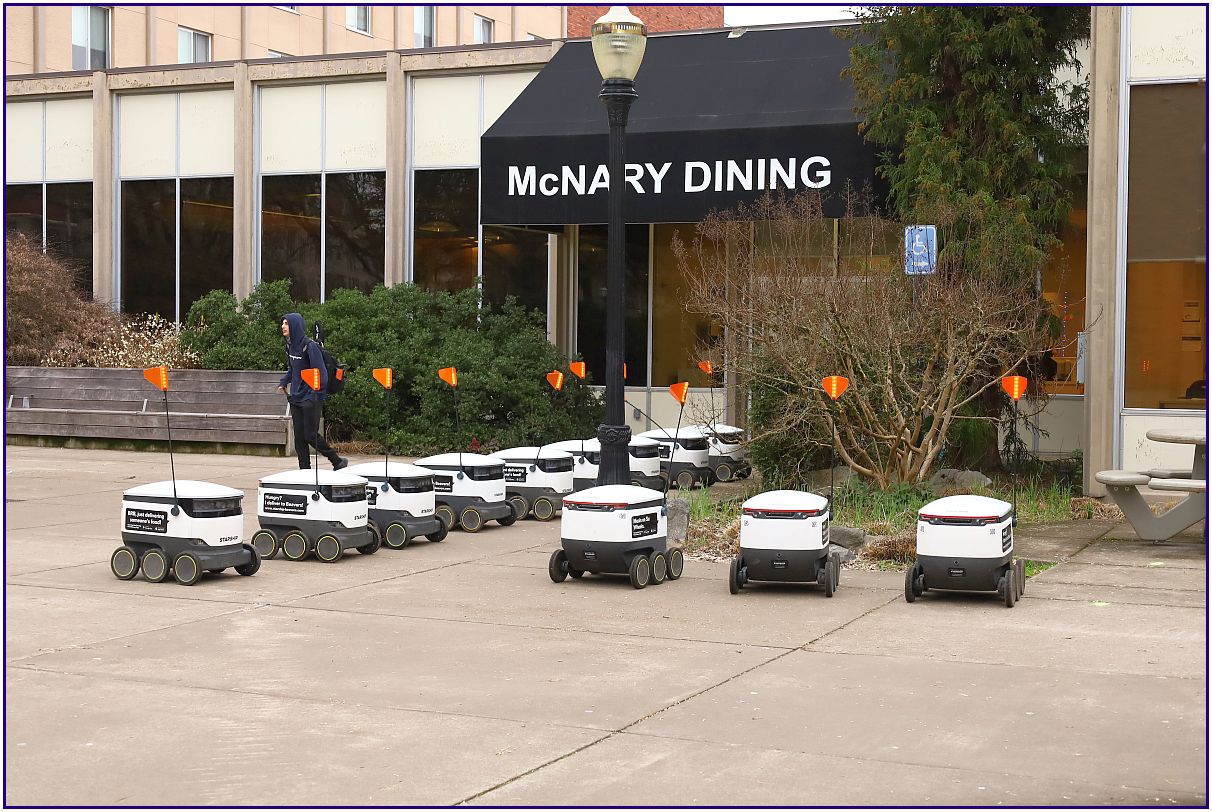 Photo No. 1 - On Friday without any rain, I did find at least one source of these food cart robots. They distribute food for students and anyone else.