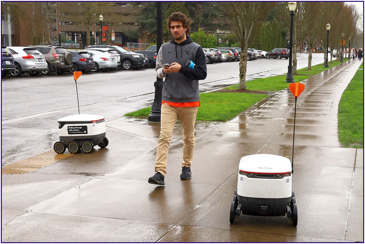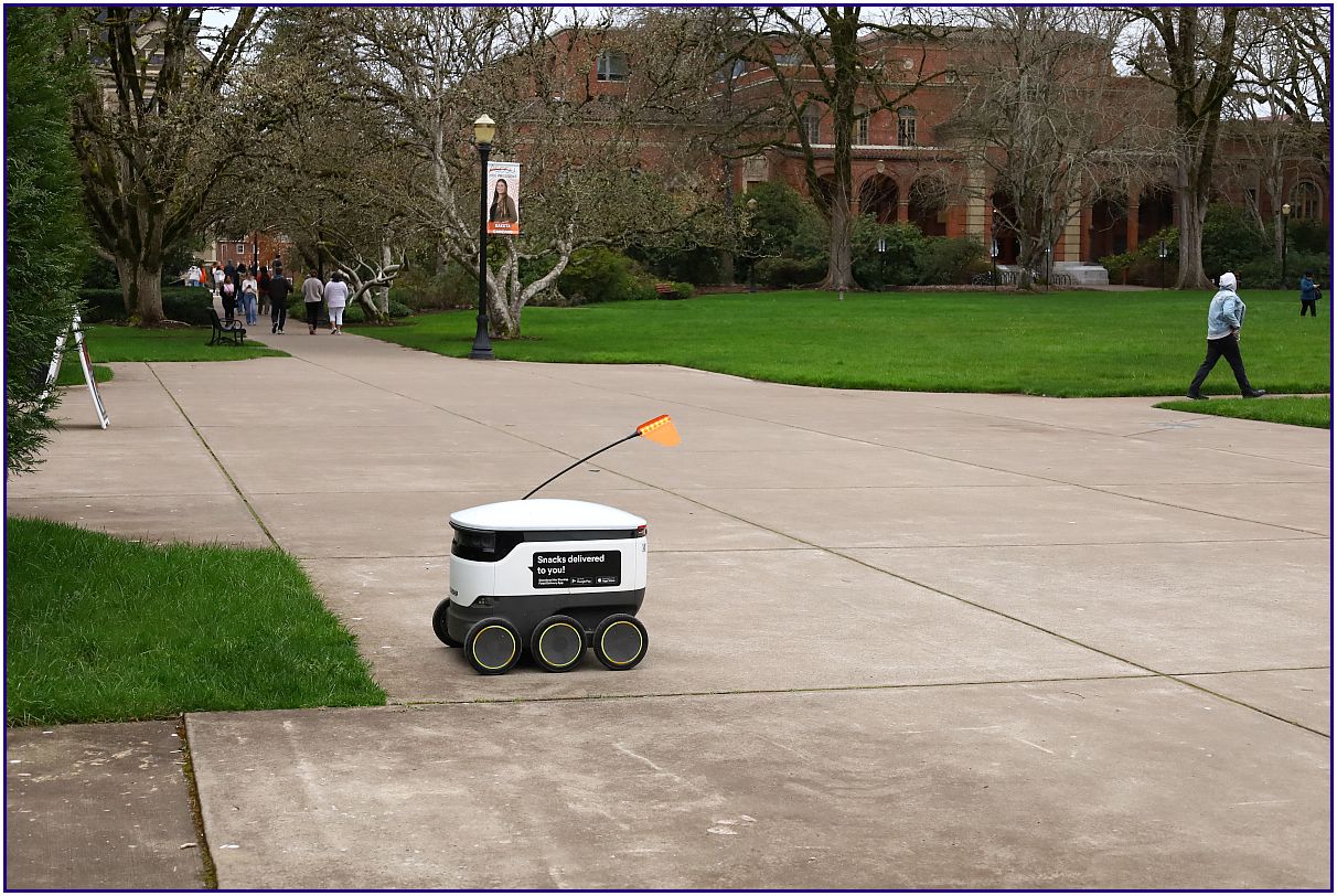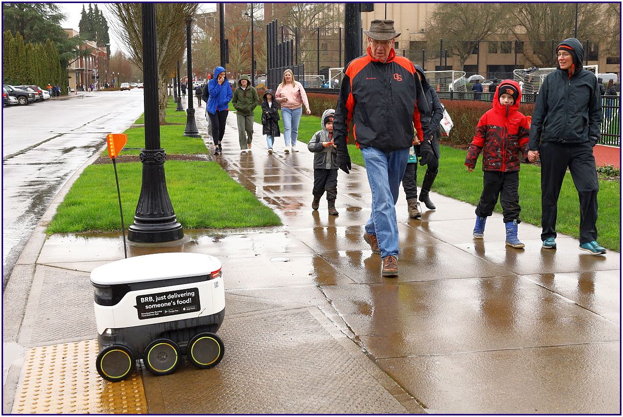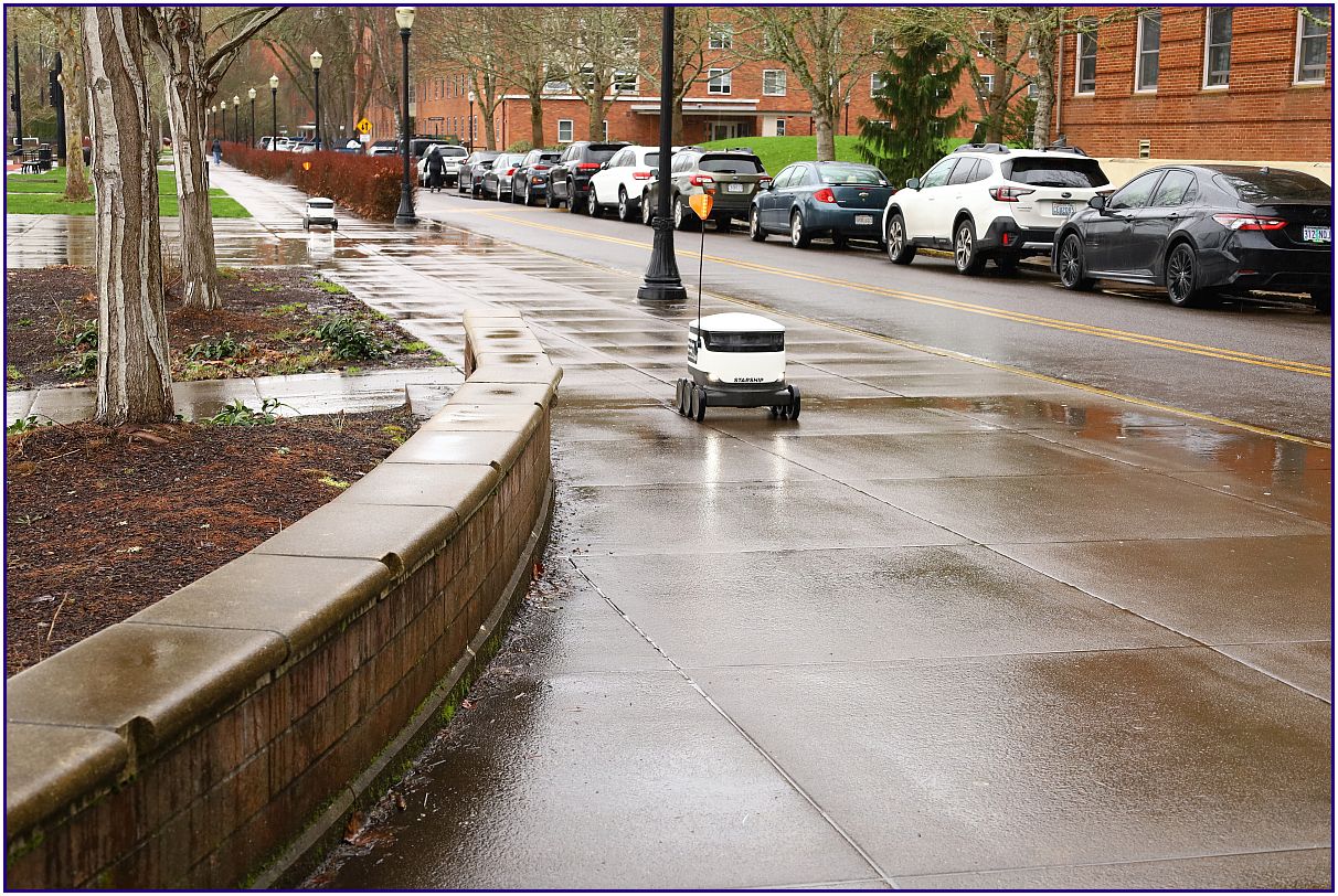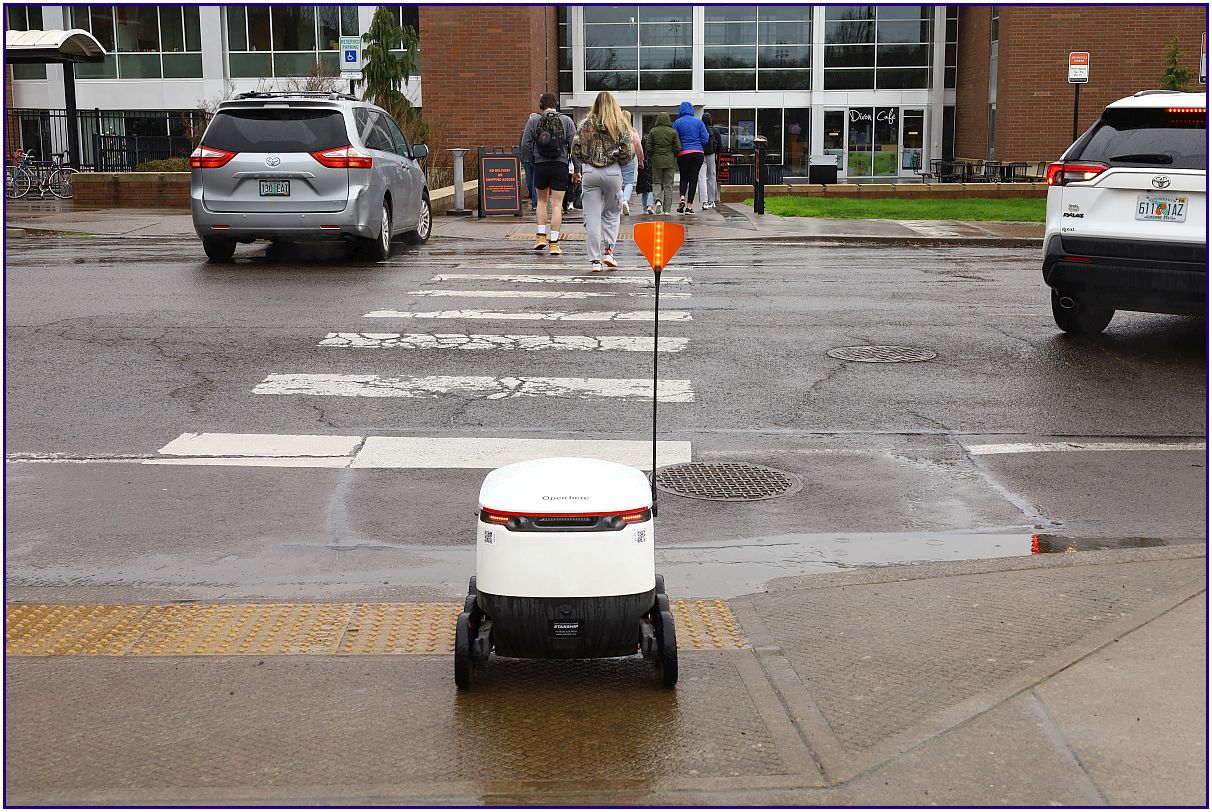 Photo No. 16 - And finally.... The robot knows to wait patiently to cross the street until there are absolutely no cars in the vicinity. It will even stop if you impede its motion on the sidewalk. Oh, one more note...the robot will only cross legally in crosswalks or intersections from what I've observed. Isn't that cool?
