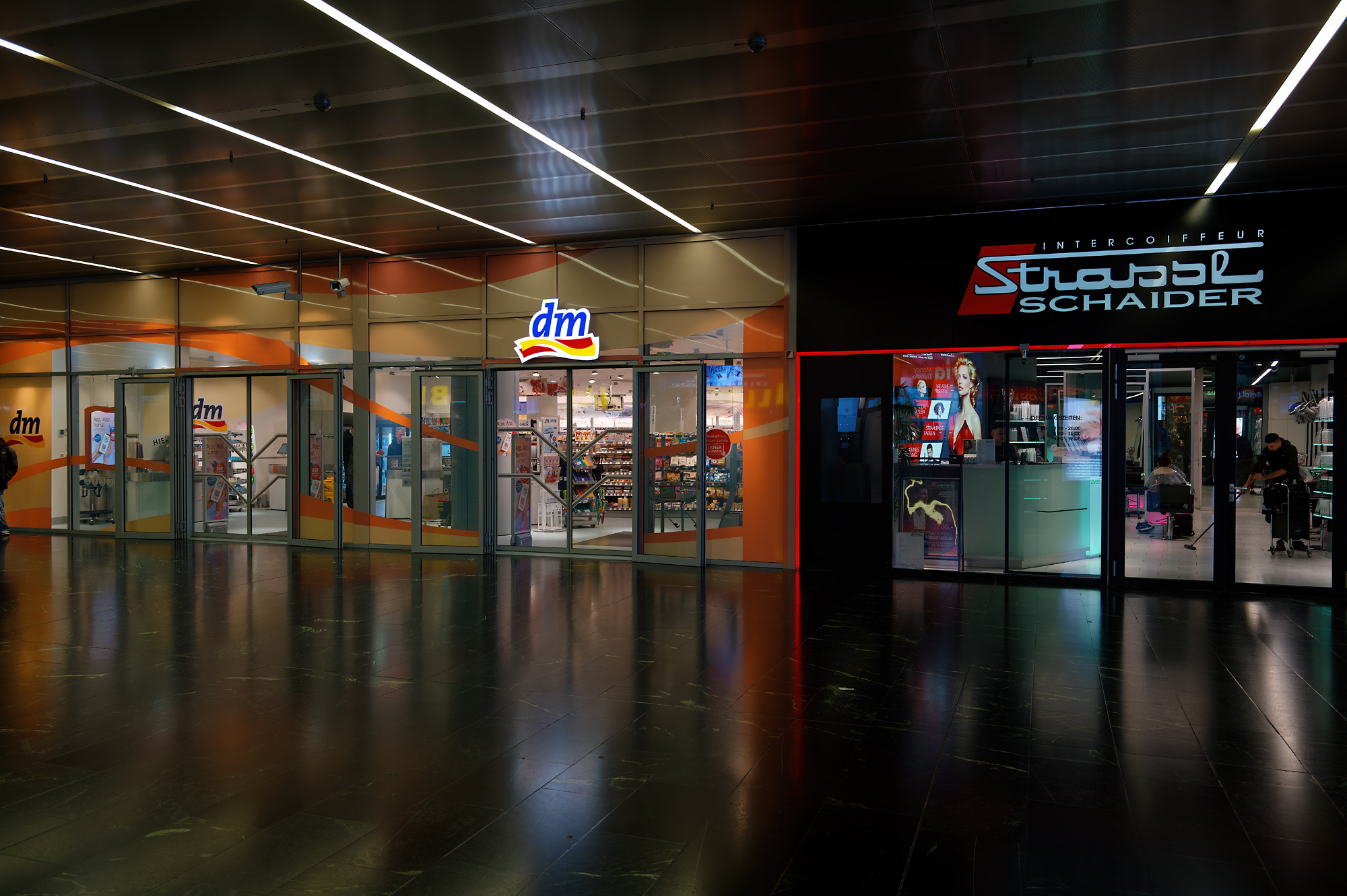 Inside we are under the main train lines. There is a "drug store" and a hairdresser on the right. dm is found all over central Europe: it is not really a drug store, as there is no pharmacy (these are separate stores): it sells cosmetics, cleaning materials, toothpaste, shaving tackle, etc.