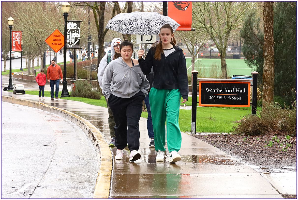 Photo No. 8 - The robot moved too fast, so I could not get the picture of these young ladies with it. You can see the two robots on the left side near the Oregon State University sign.