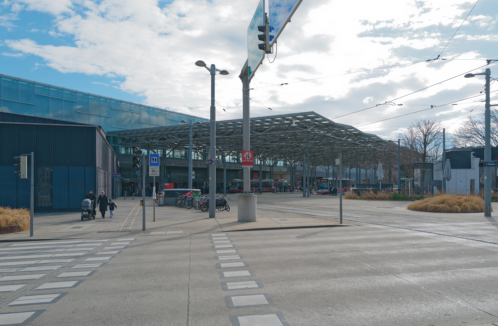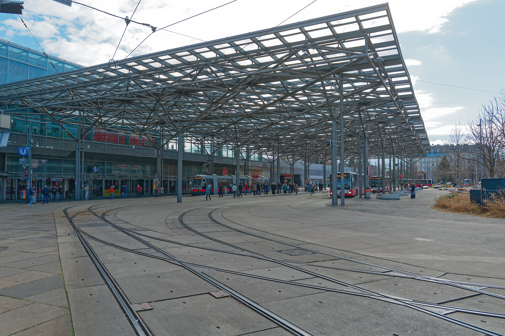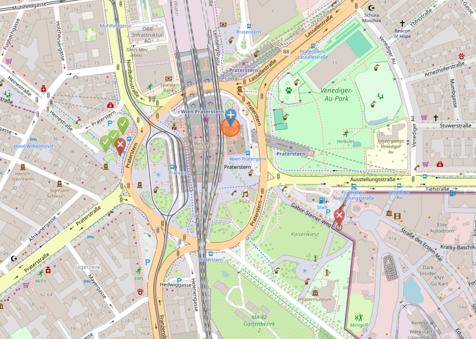 Praterstern is a large roundabout where many roads meet, and the station is in the centre of the roundabout.