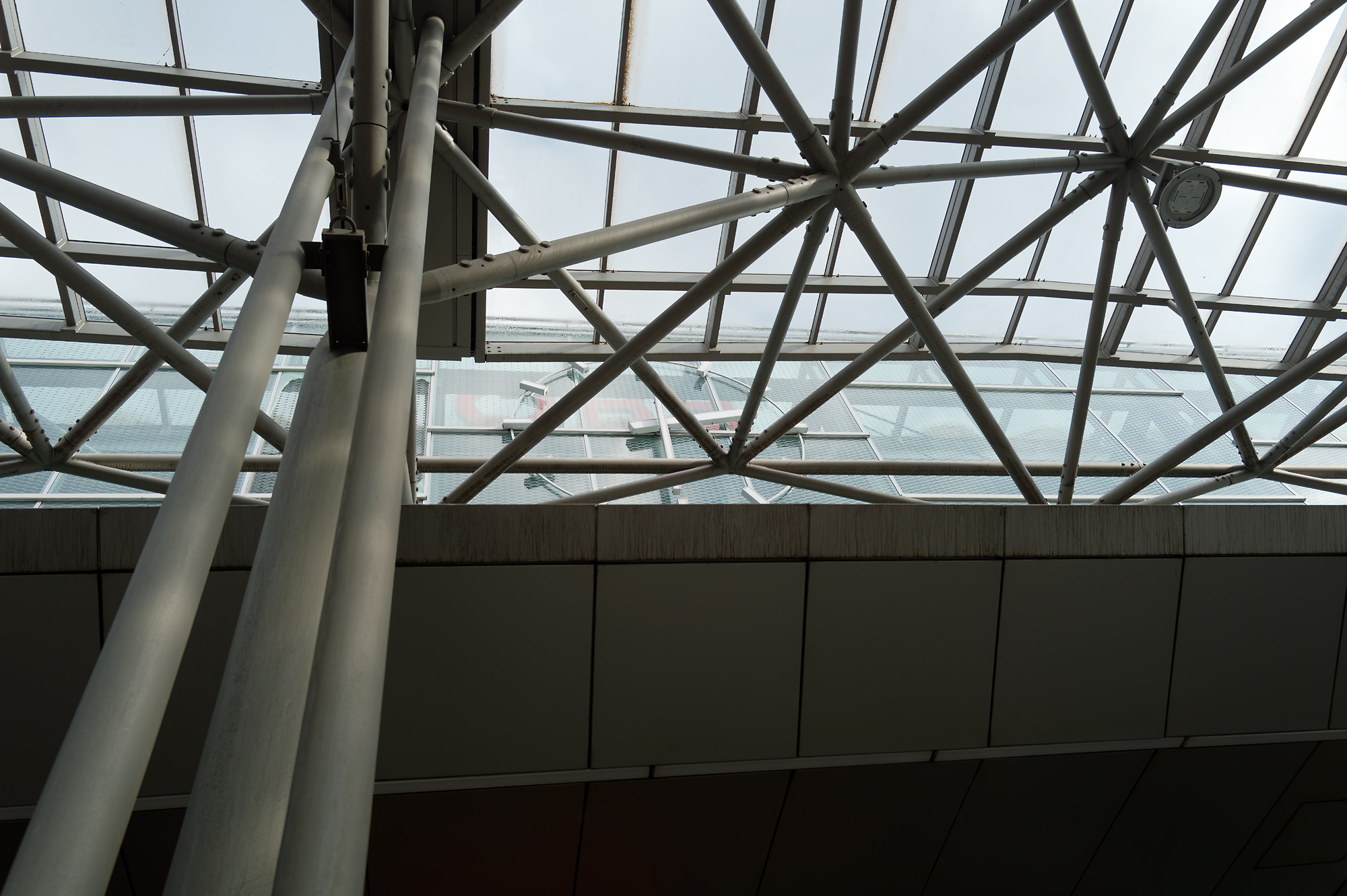The whole point of this picture was to complement the one I did from inside the station. You will recall that the weather here is almost uniformly dreary at present, so getting more light was not an option.I took the picture from the place where one can see the maximum area of the clock. From this point you cannot see the entrance doors of the station (which are in any case more often than not obscured by trams waiting under the large canopy that looks as if it was designed to resist a mountain avalanche! As I mentioned in the link above, the clock is over 2 metres in diameter, which is larger than people are tall. By the way, the picture is straight: if I had taken it at 90° to the clock face, the clock would have been behind the tree.