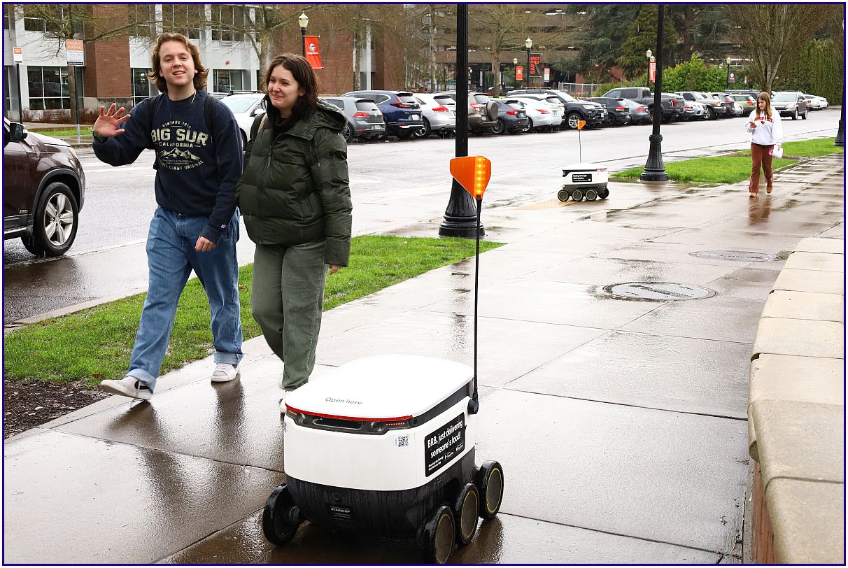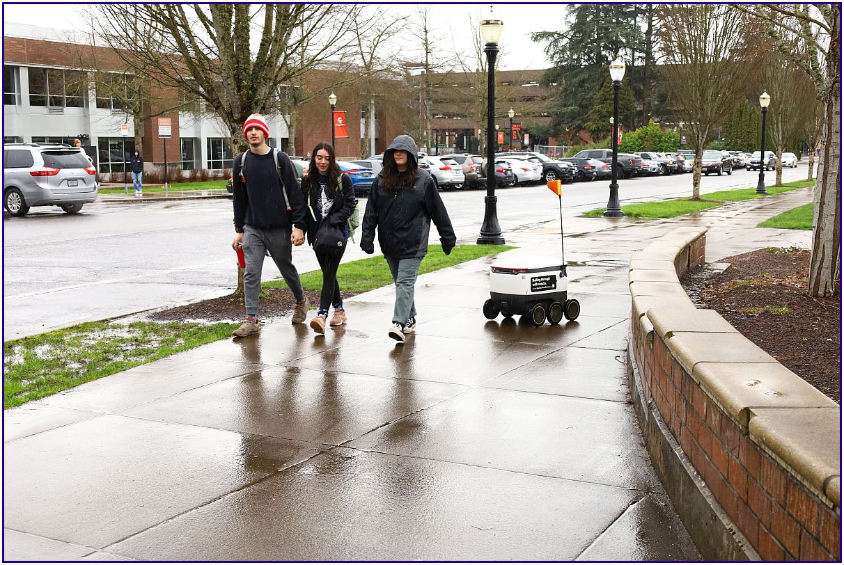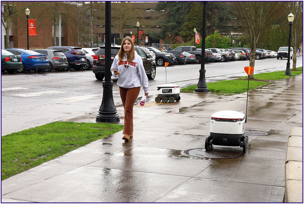 This past weekend I had a chance to visit the University in Corvallis, Oregon. I'm fascinated with the little robots. I took pictures of them on Friday and Saturday. The challenge for me was to find people near these robots and to see some interaction. However, it was more difficult than I thought as I will explain.