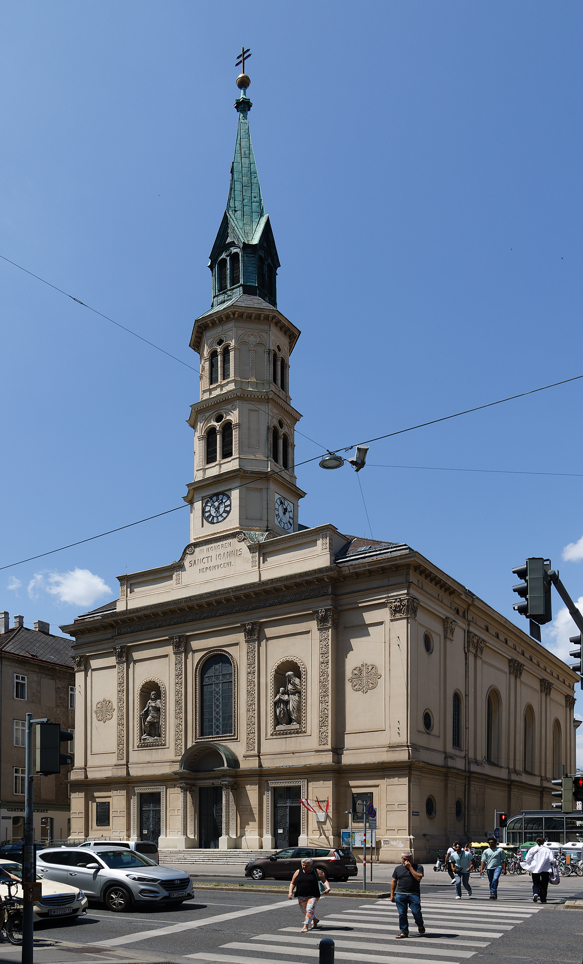 So far, I managed with the 50mm, but on the other side of Praterstrasse is the Church of St. Johannes Nepomuk. It is not enormous, but too big to be encompassed by the 50mm from the other side of the street. Even at 24mm, I am not happy with this shot.