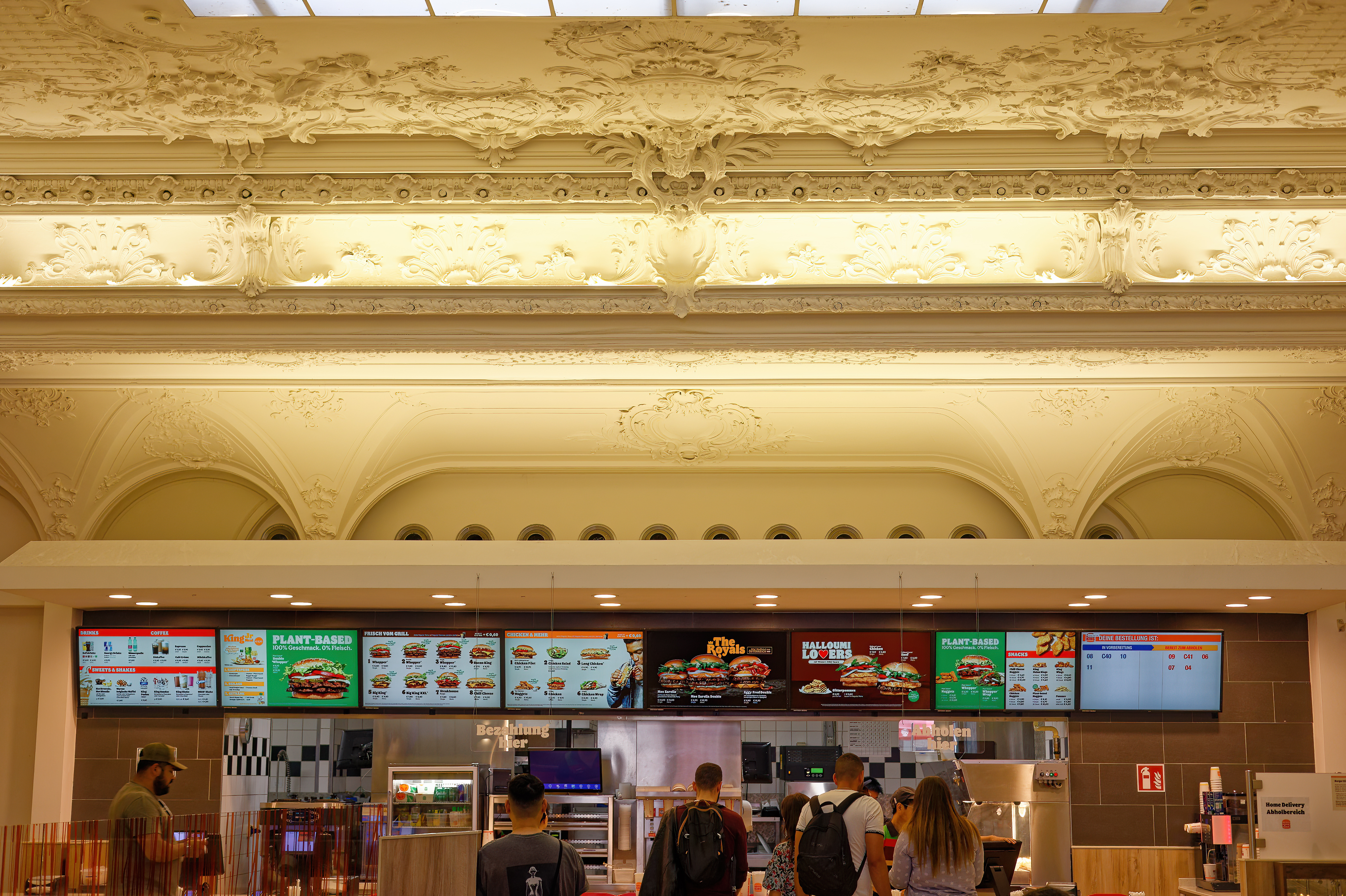I tried to give an impression of what the Burger King is like inside. The ceiling, which is only partly visible in this shot, is quite outstanding: