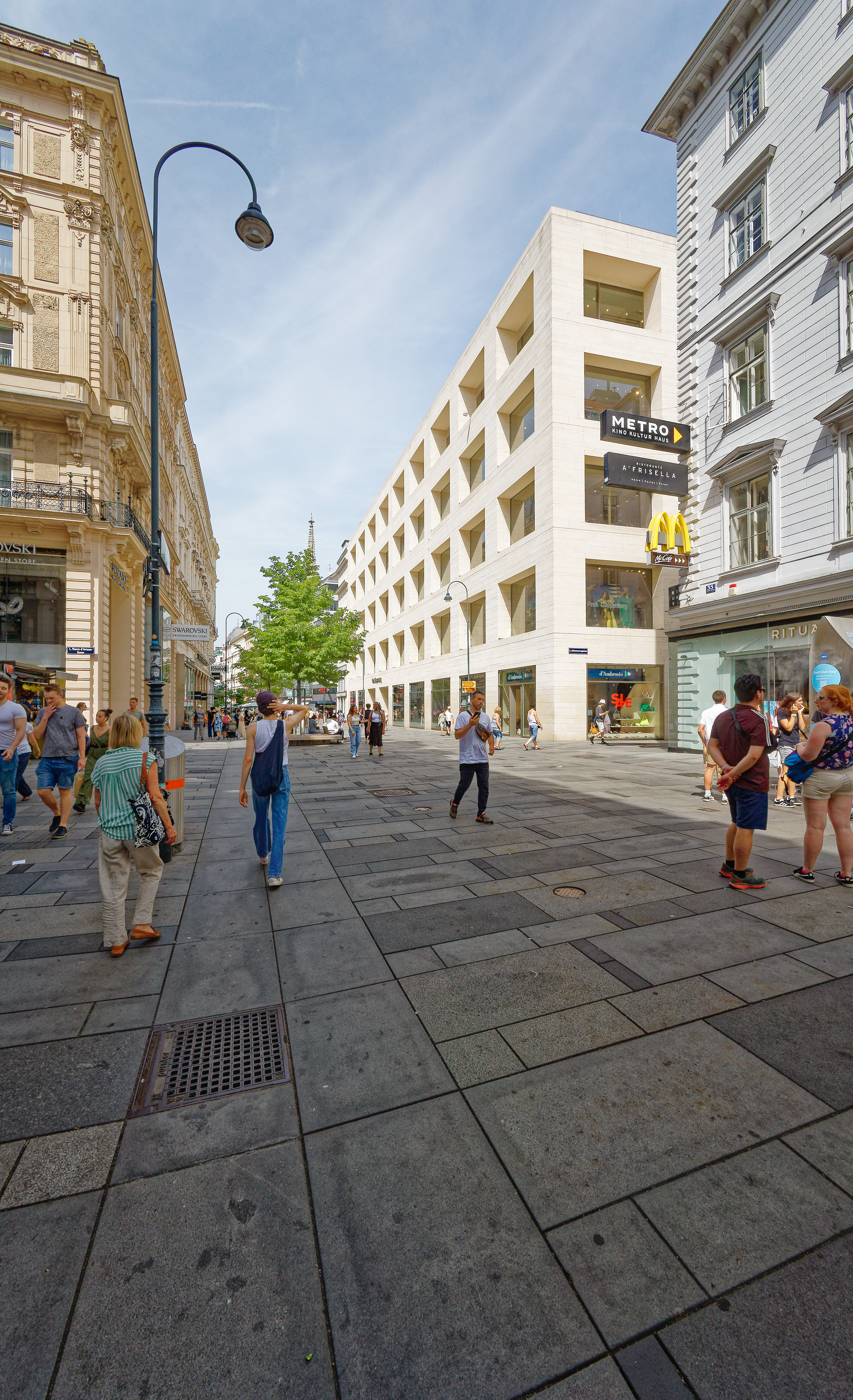 Yeah - you're right! Seems significantly better suited for what you do! In the first shot it might be a little bit too wide for my taste, but of course that could easily be cropped, while the reverse option (stitching) with the 50 mm is no great alternative on a busy street with people moving. In the shot of "Neuer Markt" it works very well and really captures enough of the space to provide a good impression. Well done!