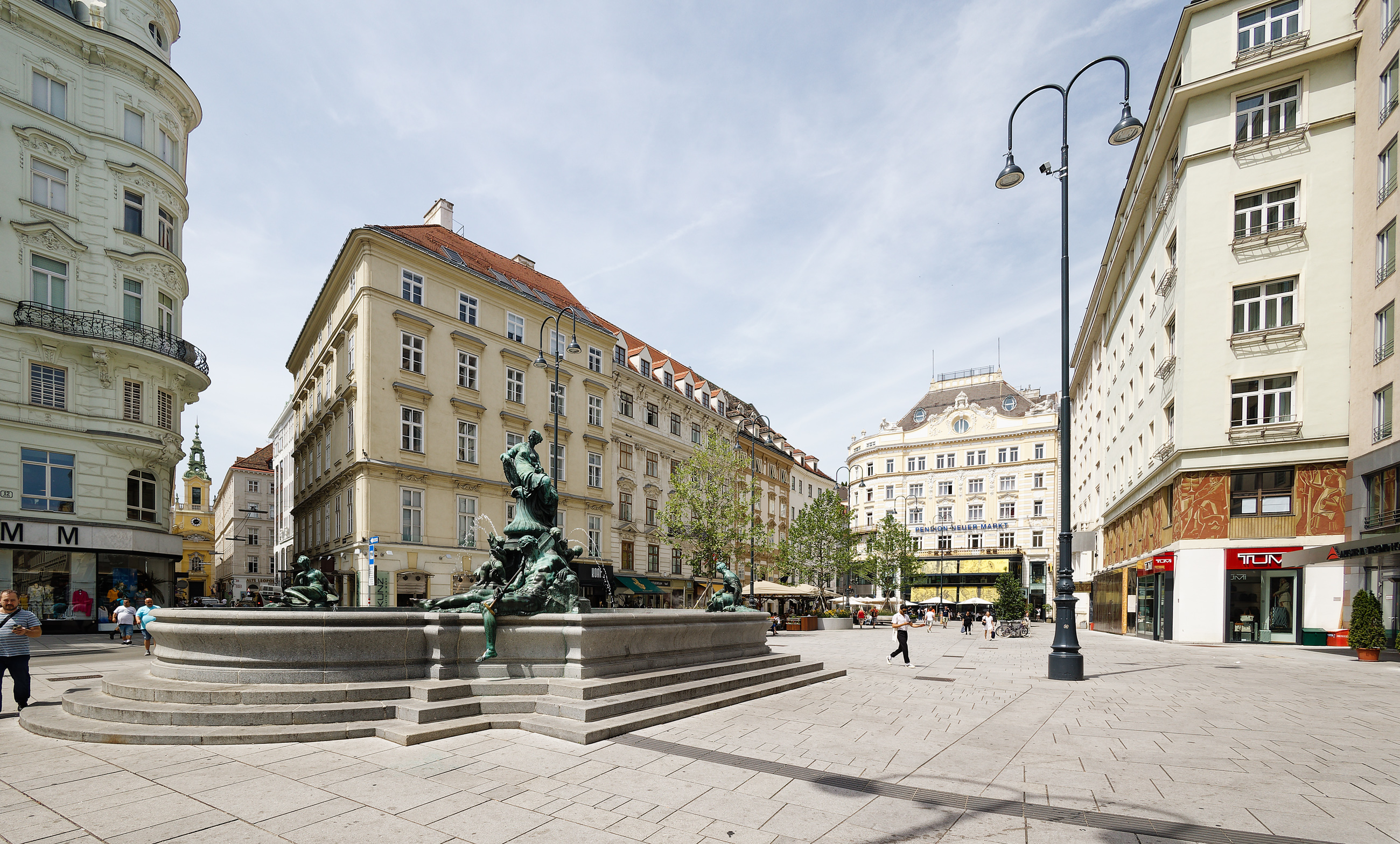 This is the Neuer Markt ("New" Market). The name dates from 1274! Last year the fountain was temporarily removed and the area was excavated for the building of a large underground car park. (Only €2.20 an hour to park right in the heart of the city!) I think the photo gives some idea of the scale of this open space.