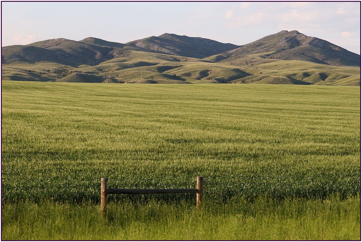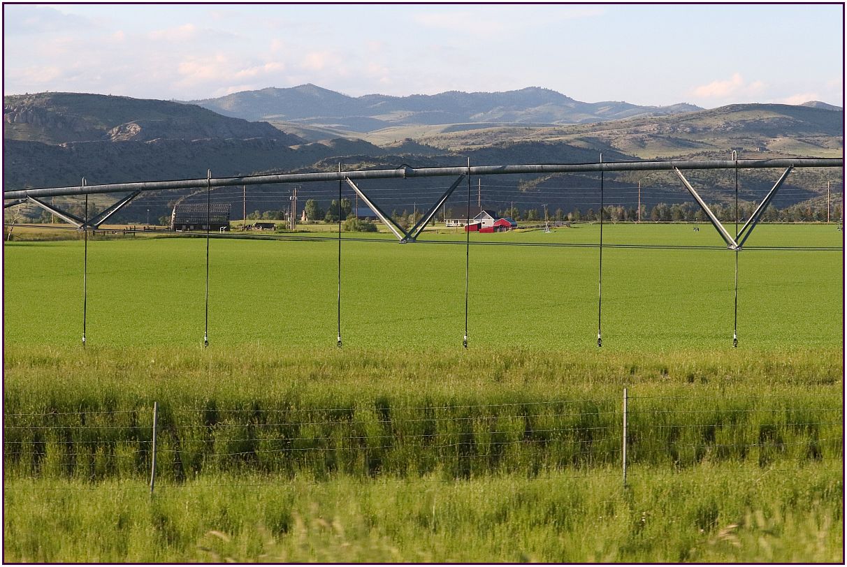 Photo No. 2 - I thought it was cool to capture this farm with its irrigation device. I'm not sure what you would call it. I had an extremely high shutter speed because we were traveling fast in the car. In Montana, parts of the state have speed limits as high as 80 miles per hour. The depth of field was good, so everything was in focus.