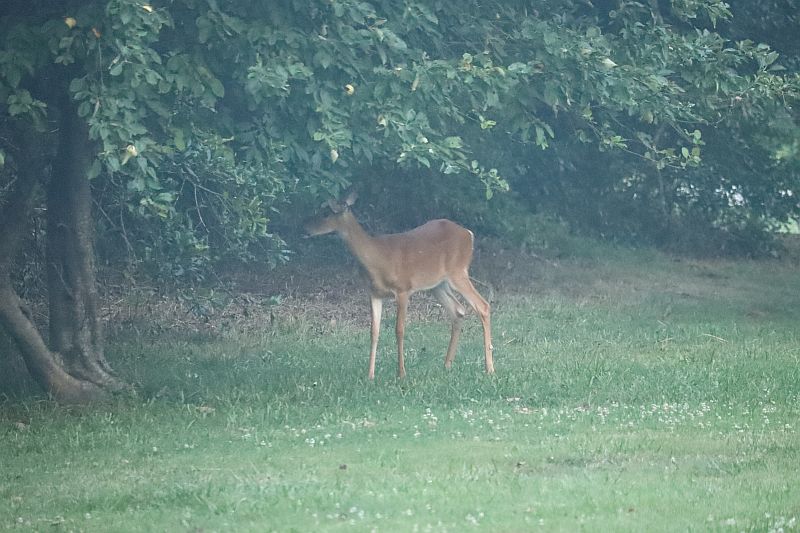 Seeing the ISO12800, it must have been early in the morning or at dusk. Did you take this picture through your house window? I don't see deer often, but when I do, I try to capture them as you have done.