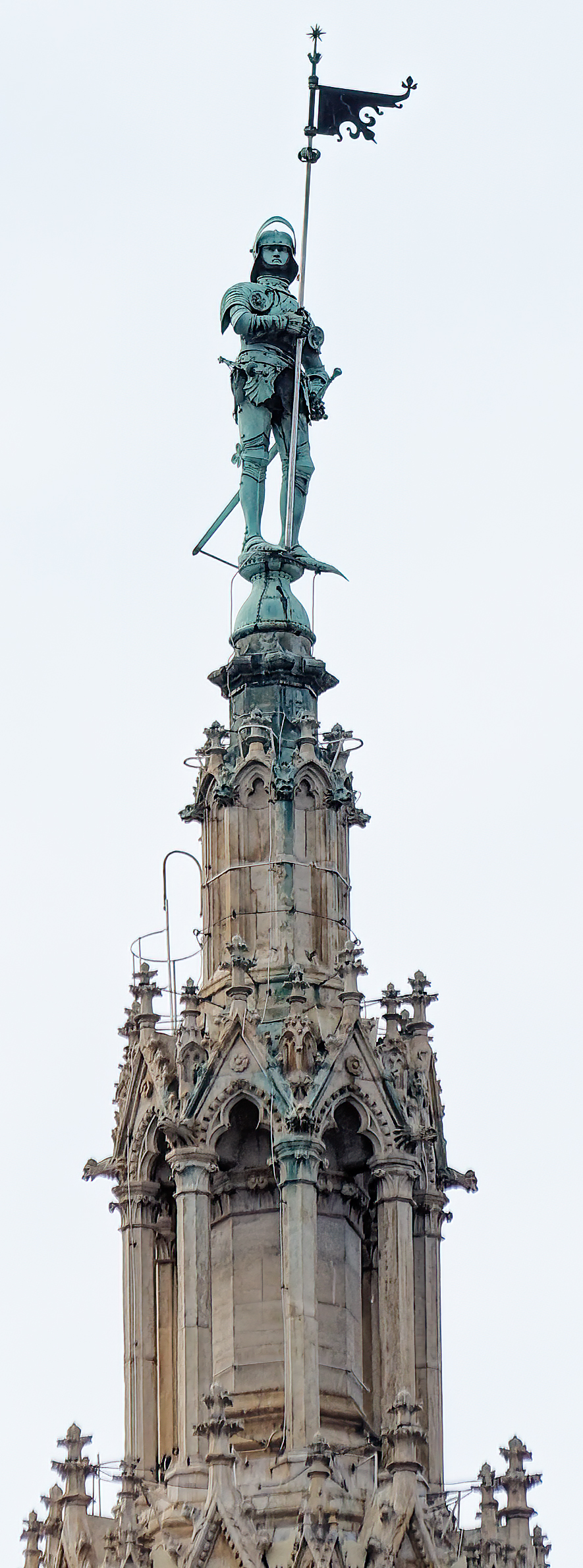 This, of the Rathausmnn, is shot with my EF70-300 lens. A little larger and better focussed. It certainly reveals more than the naked eye from ground level.