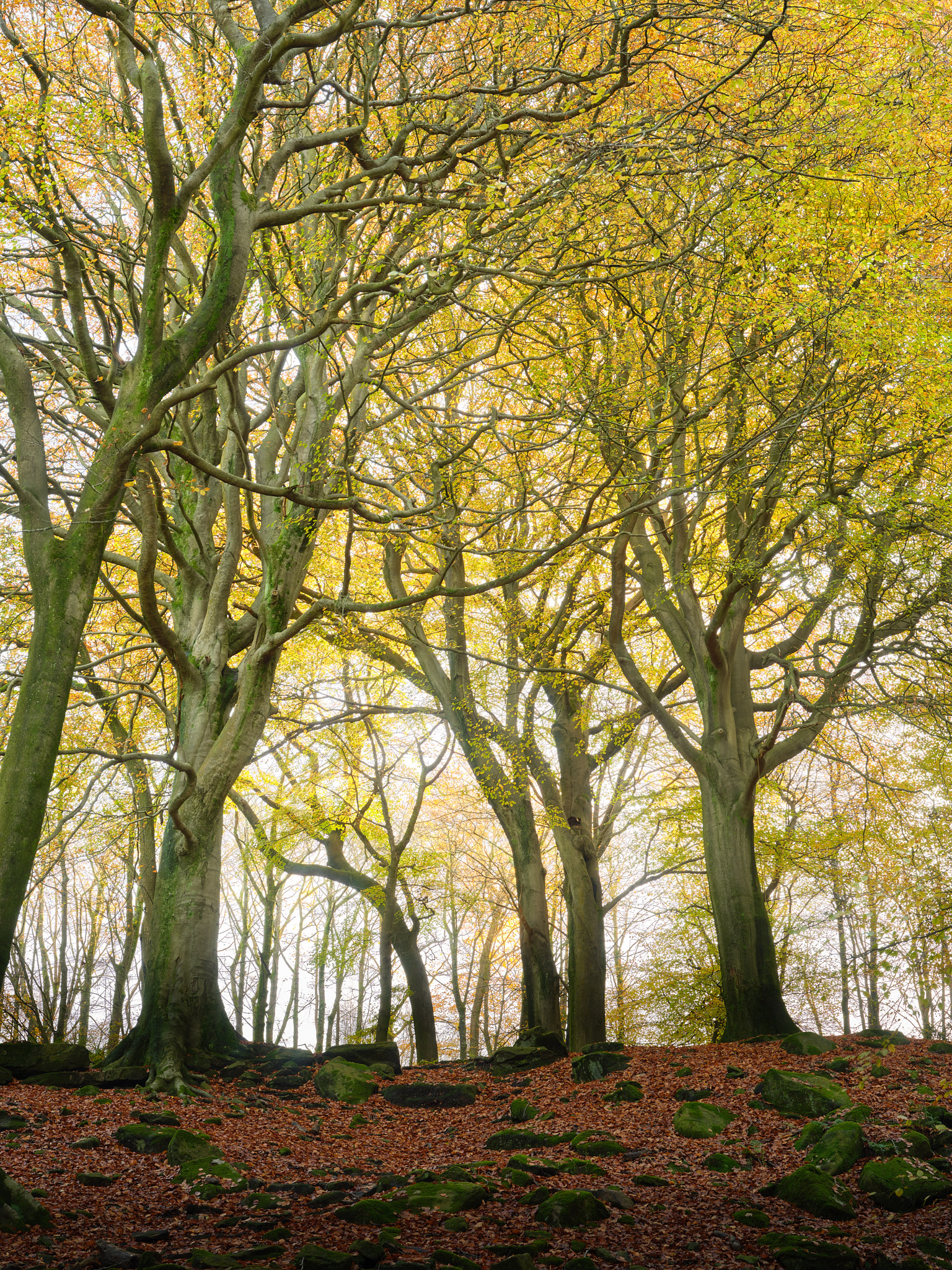 This was taken in November and I'm back in my local area at Brinscall Woods hunting for autumn colours. By this point things had really started kicking off and I almost missed this scene entirely as I was on my way to a specific location at the time. These trees stand at the top of a steep slope and I just happened to glance up and see the riot of colour above me. In the days that followed we were hit with gales and when I returned a week later there wasn't a single leaf left on any of these trees.