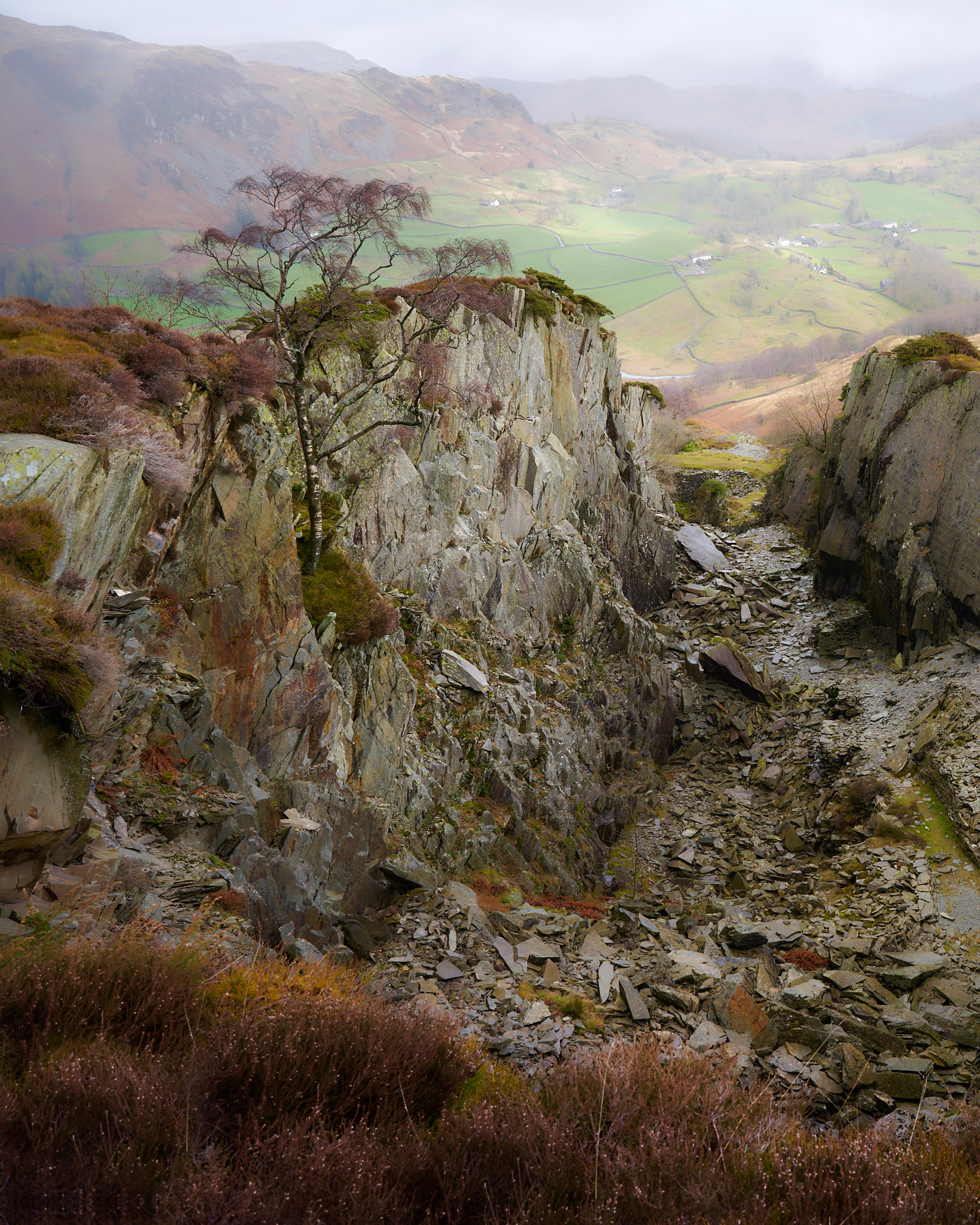 This was taken in March after returning to Tilberthwaite to visit Runestone Quarry. This is a spectacular long trench cut into the lower flanks of Wetherlam. The weather conditions were pretty wretched and drizzly on that day, but it suited the mood of the quarry perfectly.