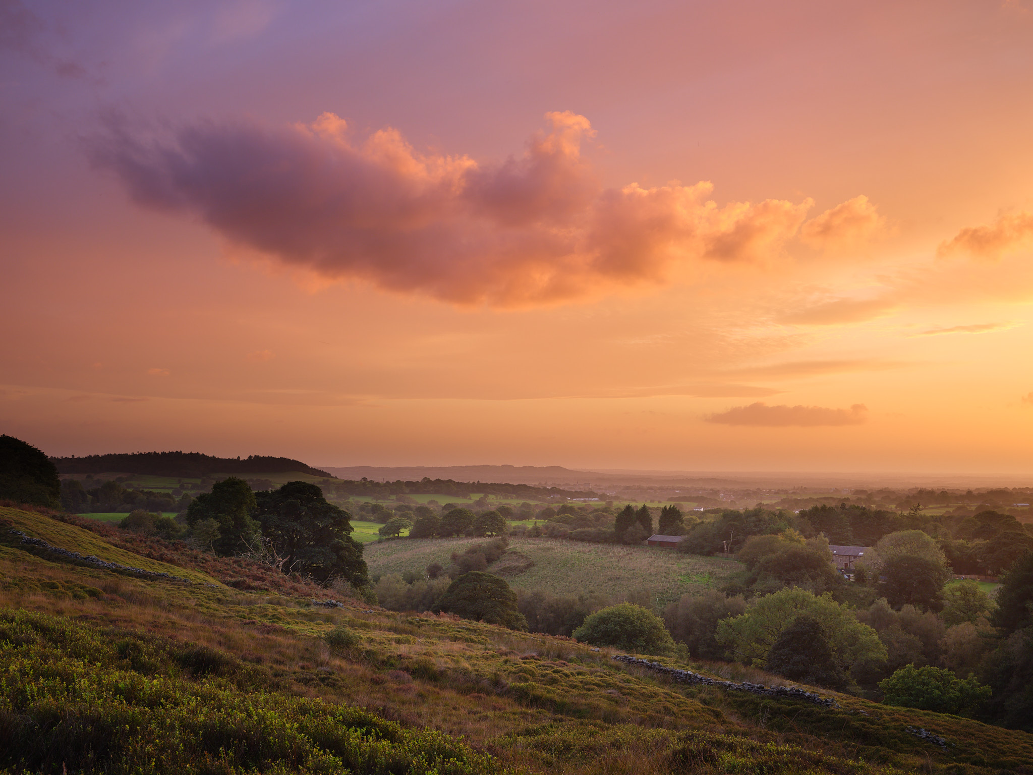 This was taken in late September at the end of a pleasant photo shoot in Brinscall Woods. I'd spent most of the evening at the opposite end of the woods and noticed the light was beginning to get quite nice, so I raced along The Goit as fast as I could drag my camera and tripod to a little spot I know on the Southern edge of the woods that provides this nice view looking across Heapey Moor towards Healey Nab and in the distance Harrock Hill. With my heart racing I managed to arrive just in time to get set up and grab several shots of this lovely late summer light.