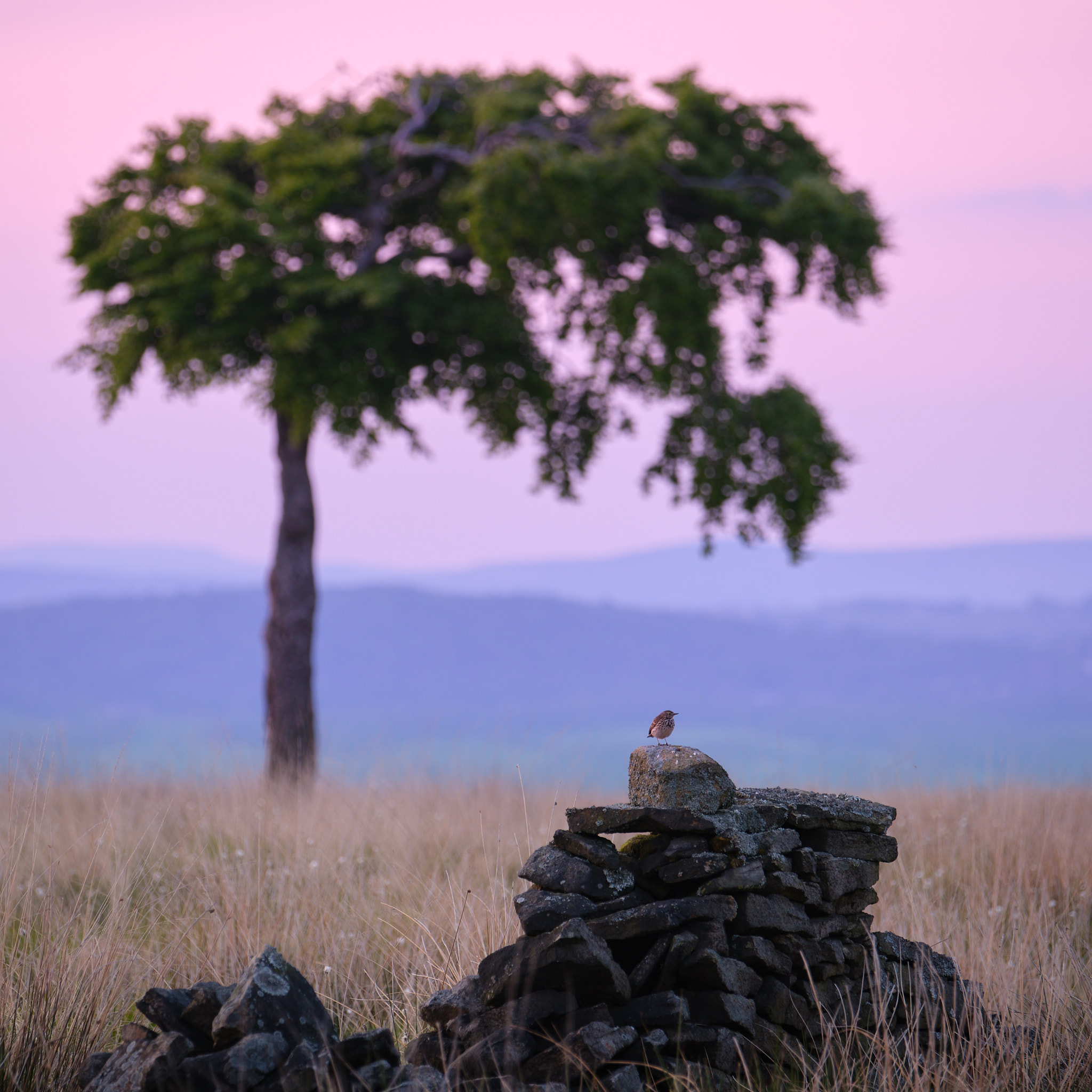 A bit of a pattern emerging here with the lone trees, but I promise this is the last (all subsequent trees have very active social circles). This is a tree that stands alone on Withnell Moor and marks the spot where Botany Bay farm once stood before the land was purchased for water capture and the moorland farms were one by one demolished as they became vacant. It is said to be more than 100 years old and spends a large part of the year looking dead as a doorpost, but here in this sunset shot I've caught it as it was beginning to bloom towards the end of May.