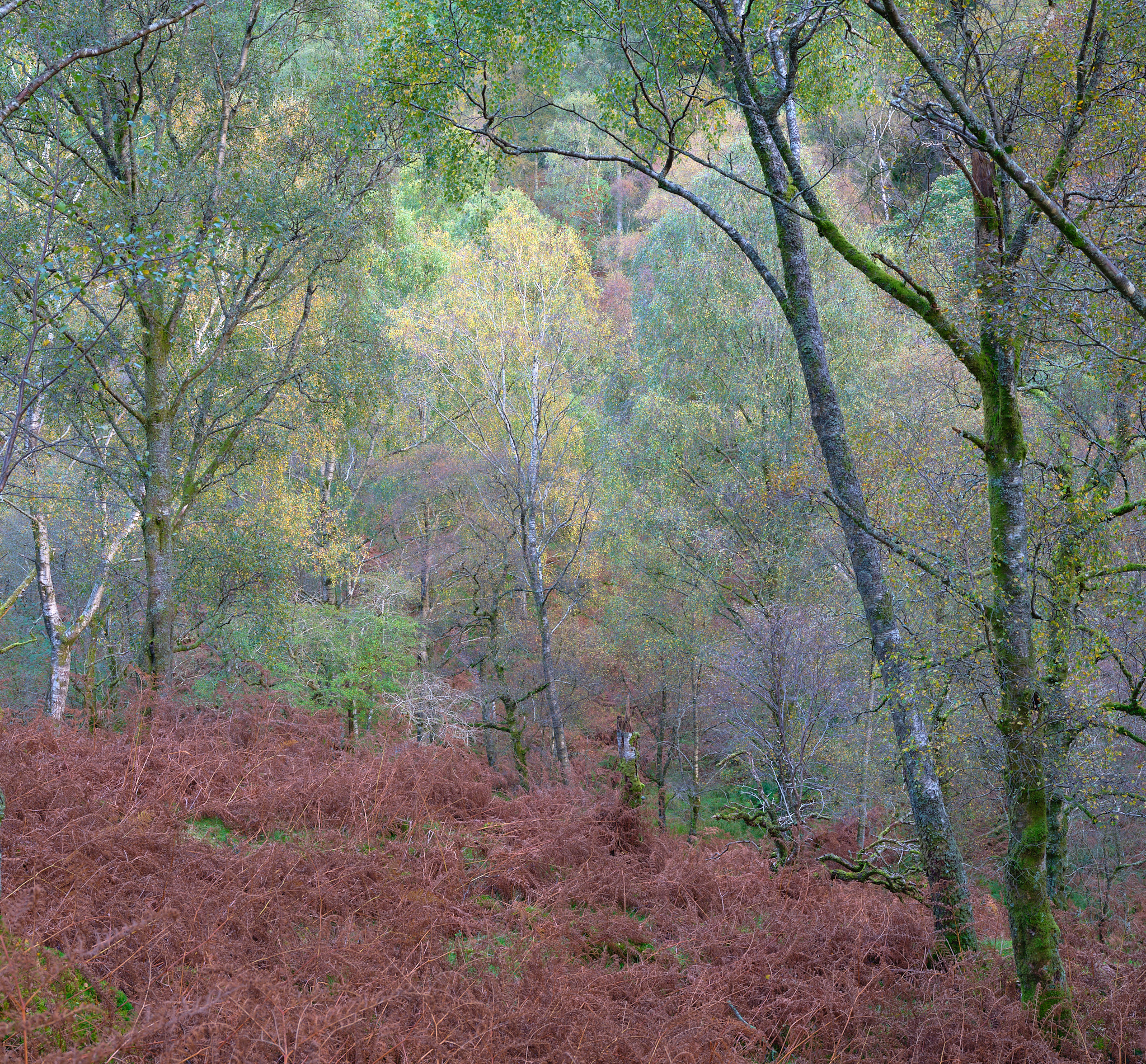 Taken in the early part of October in the woods below King's How in Borrowdale. I'd spent the afternoon exploring and photographing Cummacatta Wood and eventually reached this location towards the end of the day. The autumn colours were only just beginning to kick in at this point and this spot in the shadow of Greatend Crag was receiving no direct sunlight, giving everything a painterly look. I think this was also my first time out with the 32-64 and I was amazed at the fine detail when I got these shots back home.
